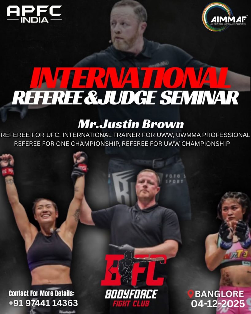 On December 4, 2025, ahead of APFC India 1, the first official UWMMA judge and referee training in India took place. More than twenty participants seized the opportunity to receive comprehensive instruction from UWMMA World Referee Justin Brown and UWMMA India Head Referee Andrew Canday.